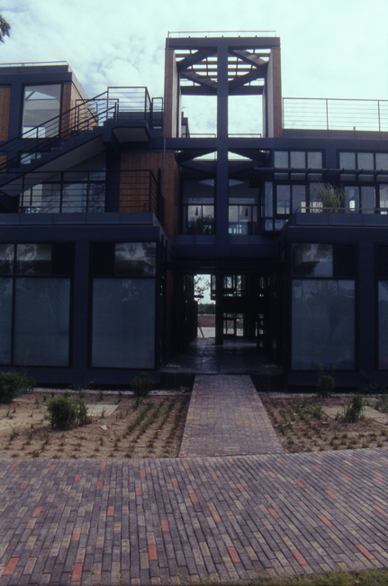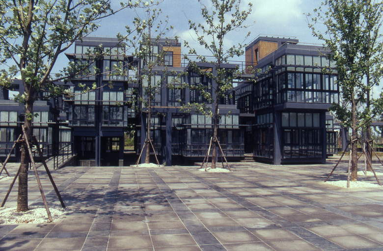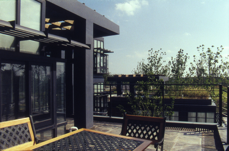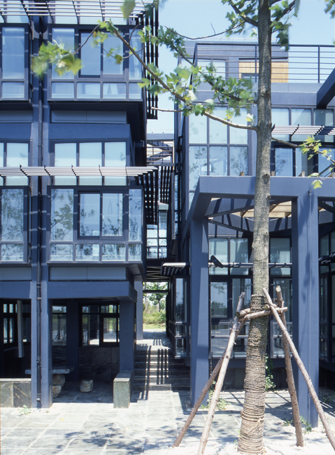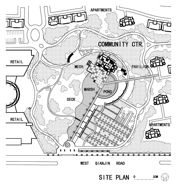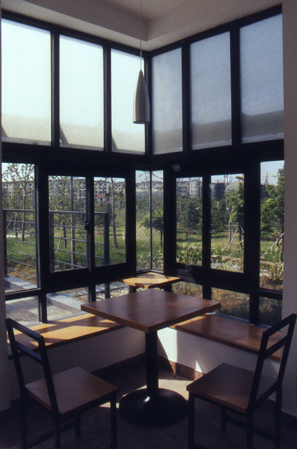 With modern buildings increasingly being designed as one large and centralized mass, this design revisited the decentralized model. Catering for senior residents living in the apartments around the park, the community center has a porous exterior appearance which resembles a forest that attracts people to enter. The building plan has many boundaries and corners to create many territories for small groups of users who come here to play cards and chess. The overall spatial structure juxtaposes rooms and courtyards/roof decks, which not only generate an intimate relationship between the indoor space and the nature (a characteristic of traditional Chinese architecture), but also produces “suspenseful” views within the building. The scheme reflects most people’s desire for a “refuge” with a “prospect” in a public space. This experiment is part of the author’s effort to localize Modern Architecture.