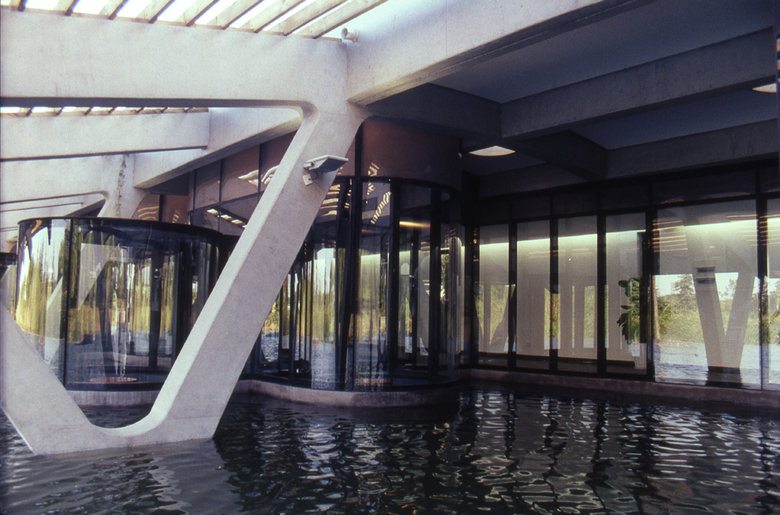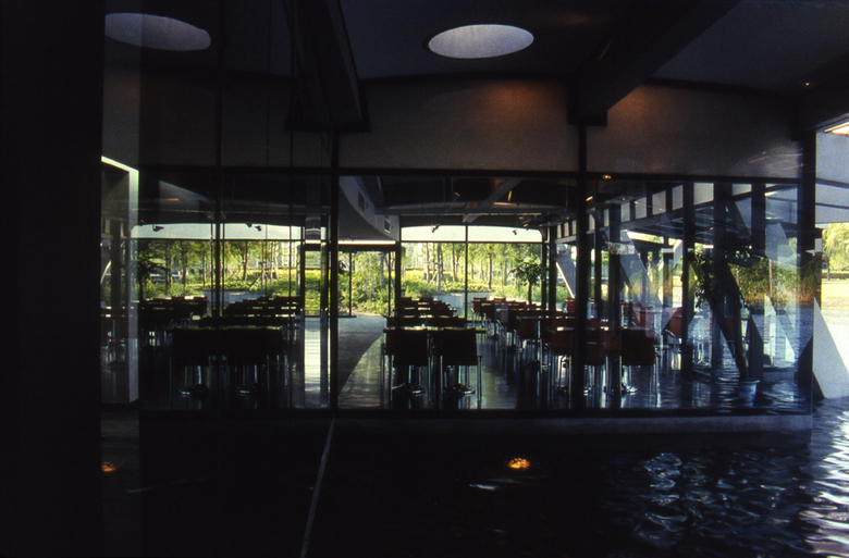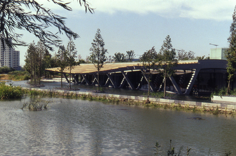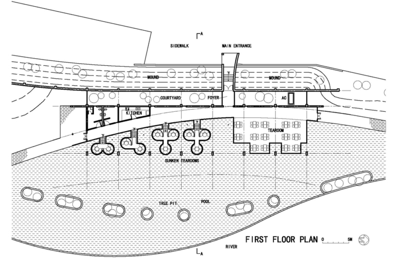 Located between an urban street and a preserved river, the design of the teahouse explored ways to reintroduce nature into modern Chinese urban life. To ensure that users can have an intimate relationship with the river, part of the tea rooms are made into sunken glass pods surrounded by water. The glass pods can be opened so people may touch the water. The water level is stabilized by an intermediate pool which appears to merge with the river when seen from the inside of the teahouse. The design also experimented on a double curved version of “flat curve”--a form often seen in traditional Chinese architecture-- with a low-tech and low-cost method.