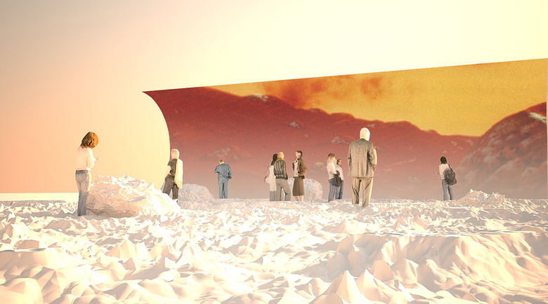 Exhibitions alway served to attract attention and to pique one’s curiosity. In this regard reginadahmeningenhoven designed a stand for the architectural magazine build. The designed moonscape is to pull visitors out of their everyday world and beams the visitors in a strange environment provoking dreams and conversations. The visitor gets the feeling that he would have gone through a mirror and had left his world behind. Instead, he entered into a new, curious and yet familiar space where it’s not like elsewhere on the inhabited planet but as in a rare dream.