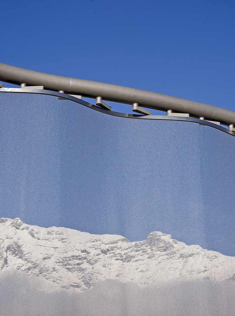 Linked to the Swarovski Veil a smooth outer space with seating, lightened pads and bicyle parking is created. A new feature is the bright and consistent Creative concrete, which acts like sandy bottom and marks a new gentle urban space instead of the usual asphalt. Even the opposite side of the street is incorporated in the shape of a grove lined with silverlimes. This creates a fluid transition to the public space. Veil, landscaping, illumination and the design of the space merge to become a breathtaking backdrop. A group of illuminated pads creates a seating arrangement and doubles as the boundary to what lies beyond… During the day, rays of sun and traveling clouds revel in this space, triggering a constant change. When night falls, a spectacle takes place that lives in harmony with the hues of the sky. This setting forms the groundwork for a permanent and enchanting transformation. Swarovski a new place to be…