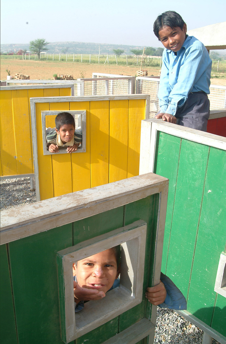 I revisited the playground a few months after its completion. One of the children pulled me aside, “Aao mein tumhe ghar dikhati hooni.” She led me proudly to the space she had ‘discovered’ the enclosed area we had envisaged as private space! Another child set on the top of a panel while his friends spun the panel ground. Not only was the playground a place to play hide and seek, it was a jungle Gym as well as a Merry-Go-Round. Because of the dynamic quality of the playground – each child used it differently, experienced it differently.
