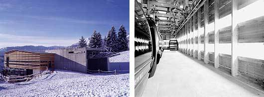 Technoide Baukörper aus Metall, Glas und Sichtbeton bilden die Bergstationen der Bergbahnen Plaun, Scancinas und Nagens in der Alpenarena Flims – Laax – Falera.