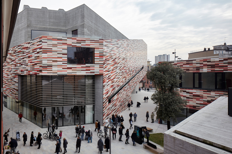 The M9 scheme consists of one larger and one smaller new building – for the museum and its offices, respectively – plus a former convent and an office building. Together they frame a new public square and open up a diagonal pedestrian link from Piazza Erminia Ferretto to the important thoroughfare of Via Cappuccina. This passes through the courtyard of the 16th-century Convento delle Grazie, which is renovated and converted for uses that will complement those of the small quarter. The route through the block is enlivened at street level by various cafés, restaurants and shops.