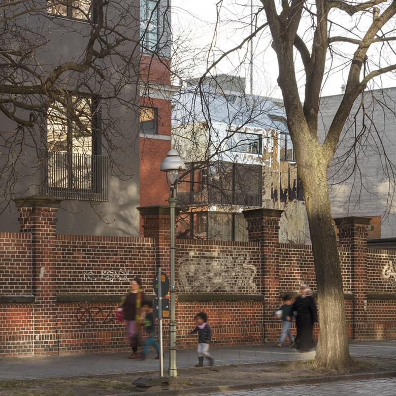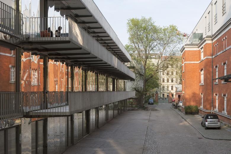The Werkhof area on Lehrter Straße, located north of Berlin's Central Station, evolved from a group of buildings that were erected for the Prussian army at the end of the 19th century. After the end of the Second World War, the ensemble has been used by artists and craftspeople, who transformed it into a lively creative quarter, adding extensions and new buildings since the fall of the Berlin Wall.