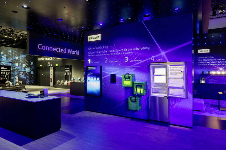 Im Food Court wird die intelligente Küche nicht nur präsentiert, es wird auch mit Unterstützung von dem digitalen Küchenassistent Mykie live gekocht. Am Herd steht dieses Jahr wieder ein Sternekoch und verwöhnt die Gäste am Stand mit kulinarischen Köstlichkeiten. Ein besonderes Highlight ist das perfektionierte Smart Food System, mit dem man von überall per App den Inhalt des Kühlschranks prüfen, eine Einkaufsliste erstellen und bei den Lieferservice-Partnern bestellen kann. Rezeptvorschläge macht auch die Home Connect App, nur Tüten auspacken und kochen muss man noch selbst - noch, denn Siemens zeigt mit seinen Hausgeräten, dass die digitale Zukunft den Menschen unabhängig von Zeit und Ort macht.
