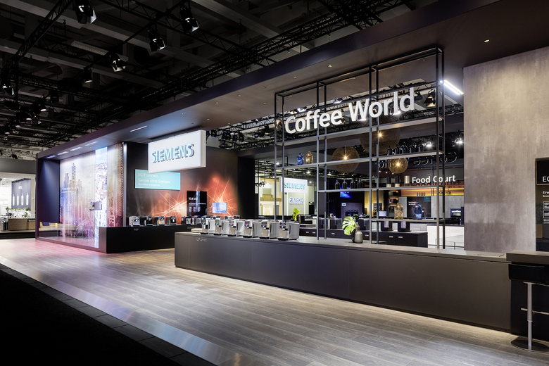 Diesen Gedanken greifen SCHMIDHUBER/BLACKSPACE in der Gestaltung der Coffee World auf. Hier wird der Genussmoment einer Kaffeeverköstigung in drei verschiedenen Atmosphären zelebriert. Dank Prisma- und LED-Technik lässt sich das Café auf dem Messestand verwandeln: mal ist der Gast in New York, mal in Rio, mal in Paris - und genießt einen landestypischen Kaffee, auf Knopfdruck in der eigenen APP bestellt.