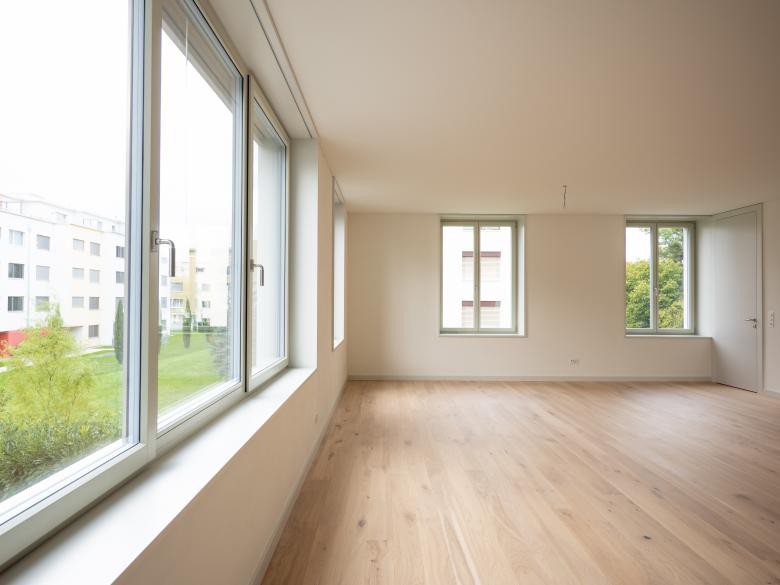 Der Bestand mit den Innenwänden und den Geschossdecken aus Holz wurde komplett entkernt. Die bestehenden massiven Aussenwände wurden mit einer Innendämmung massvoll gedämmt. Die Südfassade wurde neu aufgebaut und mit einer hochwertigen Mineralwolldämmung isoliert. Die bestehende Klinkerfassade mit den Sandsteingewänden wurde saniert. Aus der ehemaligen Brandwand wurden neue Öffnungen gestanzt. Das Dach wurde vollständig neu aufgebaut. Aufgrund der Seenähe wurden aufwendige Stabilisierungsmassnahmen mittels Pfahlfundationen ausgeführt.
