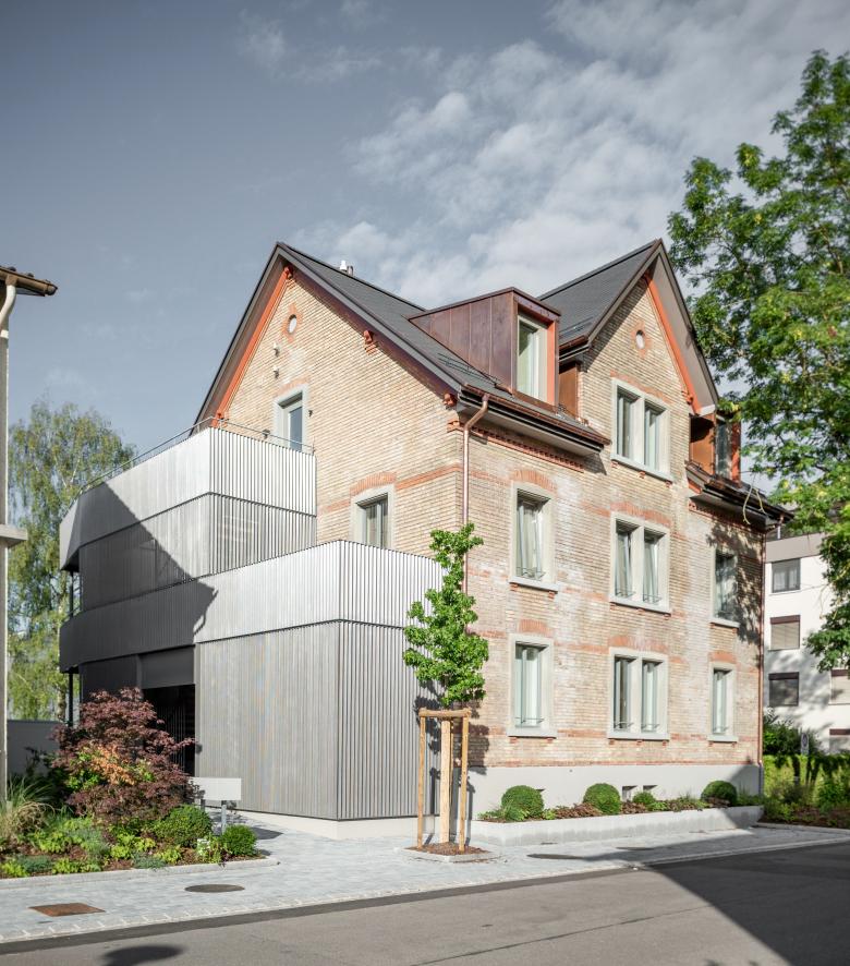 Das 2-geschossige Gebäude mit einem Hochparterre stammt aus den Anfängen des 20. Jahrhunderts und wurde ursprünglich als Mietshaus mit einem Laden im Erdgeschoss erstellt. Der ehemals gegen Westen angebaute kongruente Baukörper wurde im Zuge einer späteren Wohnüberbauung in den 1990er Jahren rückge-baut. Die Bauherrin wünschte 3 hochwertige Mietswohnungen. Eine umfassende Gebäudeanalyse ergab eigentlich einen Rückbau des Gebäudes. Das Gebäude wurde denkmalpflegerisch als erhaltenswert eingeschätzt.