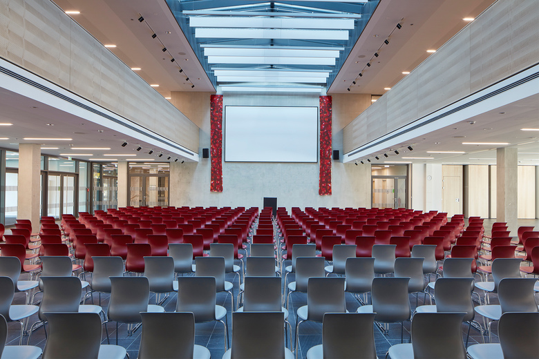 Neubau von Unterrichtsräumen in Clustern, Fachklassen, Werkstätten für fachpraktische Ausbildung, Mittagsbetreuung und Verpflegung, Tiefgarage und einer Dreifachsporthalle mit Zuschauerplätzen.