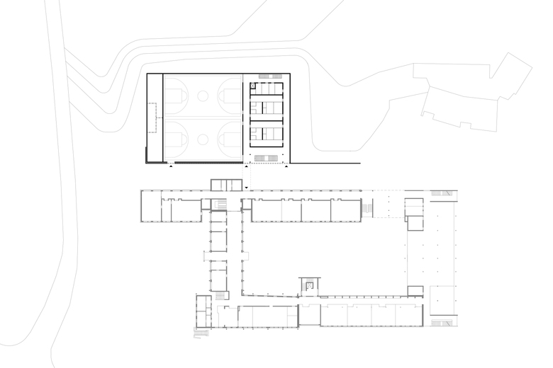 Das Grundstück nord-westlich der Bestandsschule ist hangseitig erschlossen und der Neubau situiert sich an der südlichen Baugrenze ohne die notwendige natürliche Belichtung und Belüftung der Schule zu beeinträchtigen.