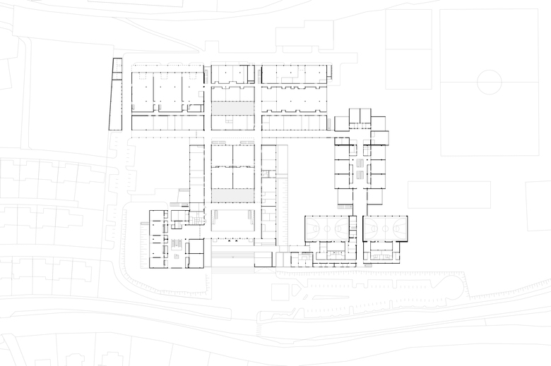 Als Prämisse für den Entwurf galt zum einen der Verzicht auf größere Neubauteile, eine übersichtliche und einfache Wegeführung im Gebäude, ein weitgehender Außenraumbezug für die Aufenthaltsbereiche sowie eine Aktivierung des Untergeschosses als vorhandene Baumasse, um einen kompakten Baukörper mit möglichst geringen Betriebskosten zu schaffen. Die Neuordnung nutzt die vorhandene modulare Baustruktur mit einem robusten Tragsystem und ergänzt ein leistungsfähiges Erschließungskonzept. Es werden flexible Raumzonen angeboten, die optimal belichtet und natürlich belüftet werden. Nachträgliche Anpassungen an geänderte Raumanforderungen sind problemlos umzusetzen. Unter Beibehaltung des Gebäudekonzepts wird die geschlossene Baustruktur durch zwei neue Innenhöfe aufgebrochen, die thematisch identifikationsstiftend sind, die Orientierung erleichtern und Lichtpunkte an den Verkehrswegen setzen. Die leistungsfähige Haupterschließung durch zwei Nord- Süd „Straßen“ bleibt erhalten. Die drei Werkstatt-/ Laborbereiche Bautechnik, Elektrotechnik und Mechatronik werden analog durch ein bzw. zwei Querspangen verknüpft. Die Verbindung zu Trakt 5 (HTL) als gedeckter Kolonnadengang kann ebenso als witterungsgeschützte Pausenfläche genutzt werden. In Trakt 1 wird das Untergeschoss für eine attraktive Nutzung aktiviert. Hierfür wird an der Ostseite ein Lichtgraben ebenengleich mit der Haupteingangsebene angeordnet. Am zentralen Kreuzungspunkt entsteht eine neue attraktive Vertikalerschließung. Diese Lichthalle dient zum einen der Belichtung und dem Ausblick für die Konstruktionssäle, zum anderen als separate Pausenfläche für den Werkstattbereich.