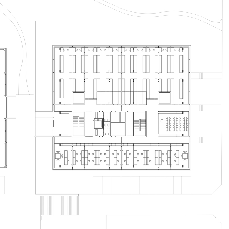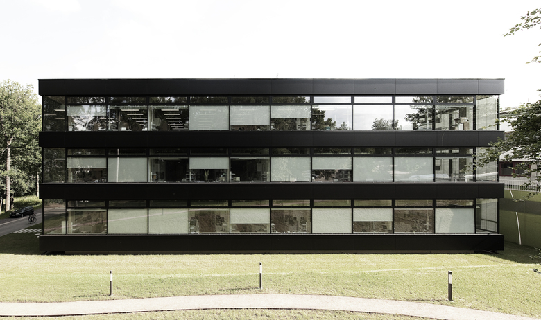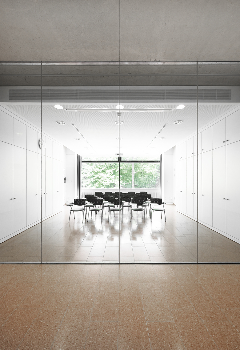 Das Forschungsgebäude für die Pharmazie wird auf dem Campusgelände der Universität des Saarlandes in Saarbrücken als 3-geschossiger Solitär errichtet. Mit seiner Gebäudehöhe orientiert sich der Neubau am bestehenden Institutgebäude für Pharmazie. Dem Raumprogramm folgend wird jeder Nutzungseinheit, also jedem Institut und den Nachwuchsgruppen jeweils ein Geschoß zugeordnet. Die Grundrisse gliedern sich in vier von Westen nach Osten verlaufende Nutzungsschienen die im Wechsel mit Erschließungsbändern die Geschoßflächen zonieren. An den Nutzungsschienen bilden sich zwischen den Stützen Bereiche die als Schrank- und Installationsraum genutzt werden sollen. Drei Lufträume durchschneiden die so entstehenden flexibel nutzbaren Geschoßflächen und belichten auch innenliegende Bereiche. Durch die konsequente Zonierung der Grundrißstruktur in Erschließungs-, Versorgungs- und Nutzflächen, kann sich das Gebäude allen nachträglichen Nutzungsänderungen und -verschiebungen anpassen.