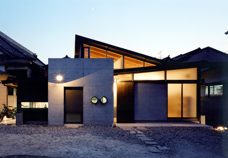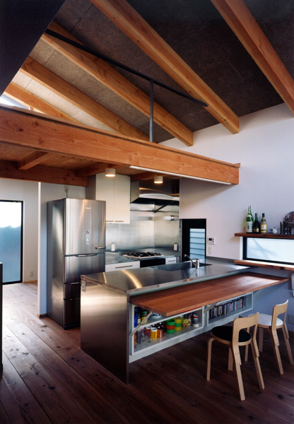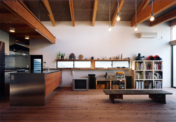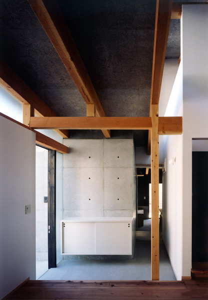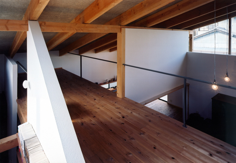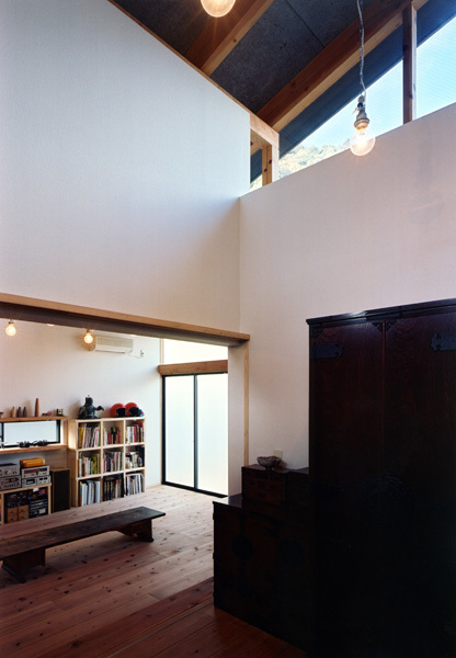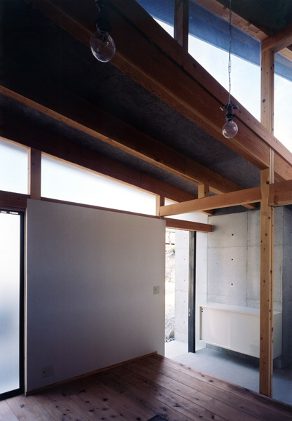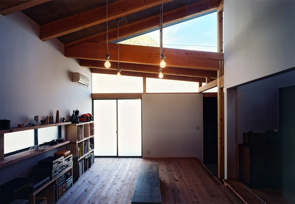 A single-story combined studio and residence for two potters. In the horizontal dimension of the house we sought a maze-like layout, while our handling of the vertical dimension ensures light and air circulation. The result is a single room where all three dimensions play a key role.