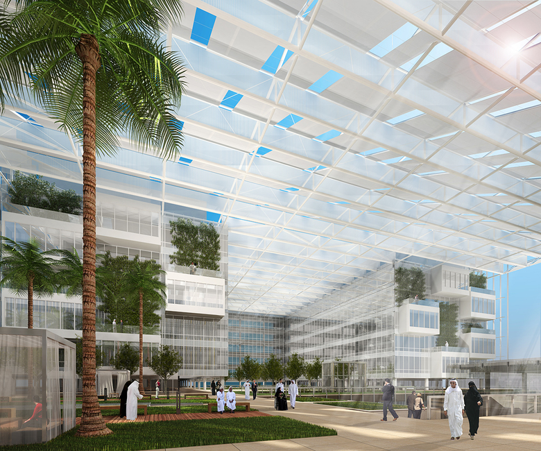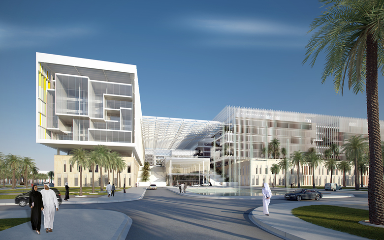 Sheikh Khalifa Medical City is a 3-million-square-foot medical complex in the heart of Abu Dhabi. Conceived of as three hospitals under one roof, the 850-bed complex combines a general hospital, women’s hospital, and pediatric hospital. Envisioned as a "city within a city," the design defies the typical model of a medical center and creates a bustling campus-like environment of distinct character and vibrant public spaces engaged with its community. Informed by historical regional precedents, the design seeks to strike a balance as a state-of-the-art vision rooted in local heritage. The design responds to, and is respectful of, the unique culture of the UAE and its demanding desert climate.