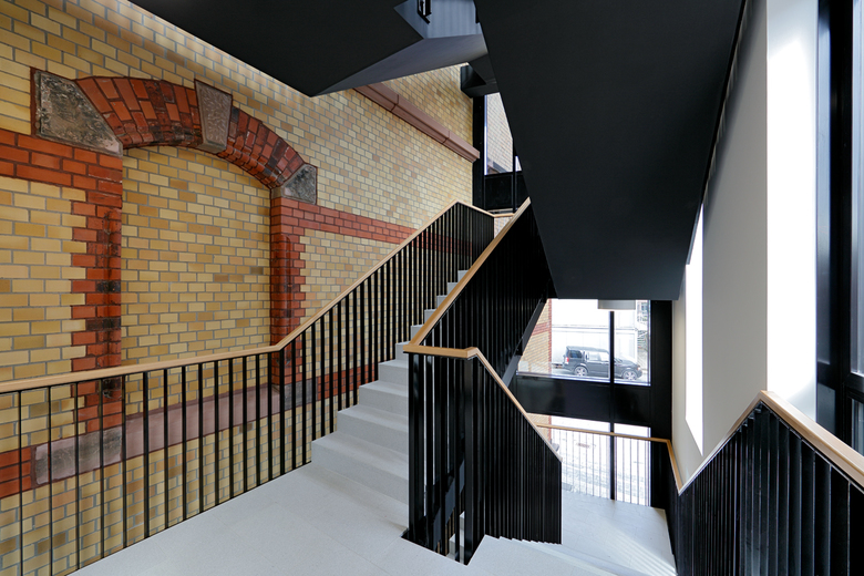 On a corner plot of the former Uhlan barracks in the Derendorf district of Dusseldorf stands the building ensemble Clara & Robert, by sop architekten, which links the two new buildings with the historical Saarhaus. The Wilhelmine barracks, erected in 1890 and currently among the largest remaining barracks facilities in the Rhineland, were given new life through comprehensive renovation and expansion. The Clara & Robert office complex builds on the location’s architectural history, while the preservation of the expressive Saarhaus, which is being integrated into one of the new buildings, restores the link to the former barracks. The name and inspiration for the two angular, interlocking, L-shaped buildings, which boast around 16,800 m2 of rentable space, were the composer couple Clara and Robert Schumann, who lived in Dusseldorf in the middle of the 19th century. The vertical slits in the polished natural aluminium building envelope recall old perforated-metal music discs used to record sound for mechanical musical instruments around the beginning of the last century. The material’s matte shine lends the façade a discreet reflective quality, allowing the changing light conditions to project a myriad of different moods onto the building. The largely visible yellow-brick façade of the historical Saarhaus is framed by the protruding shell of one of the new buildings. A monolithic Corten steel box, the colour of which samples the old brick, contrasts while expanding the old building by two storeys, thereby establishing architectural relationship with the new complex. The resulting flat-roof construction offers space for attractive rooftop terraces. The main entrance areas are fronted with an expansive glass façade. All window installations are furnished sun-screening systems. Both 7-storey office buildings possess a flexible floor-plan structure, which guarantees the integration of variously sized rental units. The office space is variably divisible on all floors, and can accommodate all conceivable types of tenants, from individual and group offices to combined-use zones and open spaces. The underground levels, which link the two buildings to one another, are used for technical facilities, storage and a car park with around 300 parking spots. The grounds around the building have been intensively planted and provide space for fully paved access routes and generous driveways. The property’s existing trees that were able to remain were integrated into green islands, emphasising the history of the location. Location Dusseldorf Derendorf Developer die developer Projektentwicklung GmbH Team Jurek M. Slapa, Jürgen Kowald, Daniel Kohlmeyer, Frank Ostrowski, Irene Lening.