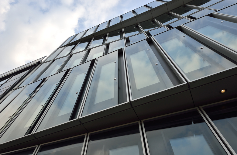 Inside the building, the atrium, core structures and stairways all make reference to the architectural ideas at work in the main building. The modular space can be configured as open space or individual and combination offices and the division into two separate rental areas with cost-effectively organised sanitary and plant facilities offers the potential for straightforward, long-term extension to the south.