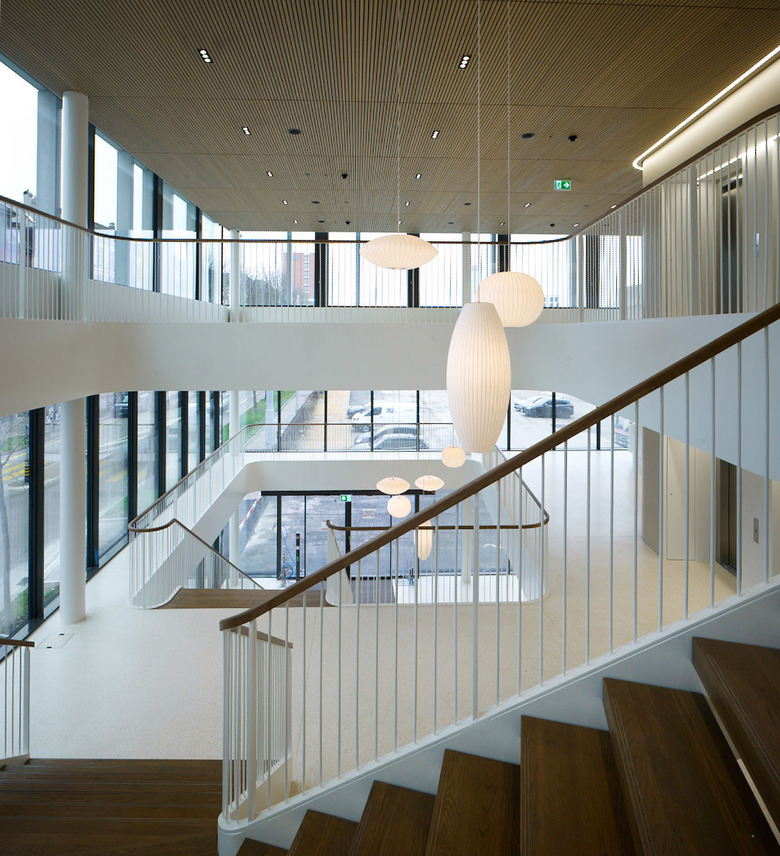 Im Erdgeschoss des Gebäudes befinden sich die Lobby, ein Shop, Showrooms sowie ein Restaurant. Im ersten und zweiten Obergeschoss sind primär Ausstellungsflächen konzipiert. Darüber liegen vier Bürogeschosse. Das oberste, überhöhte Geschoss nimmt ein grosszügiges, multifunktional nutzbares Auditorium mit Rundumsicht auf.