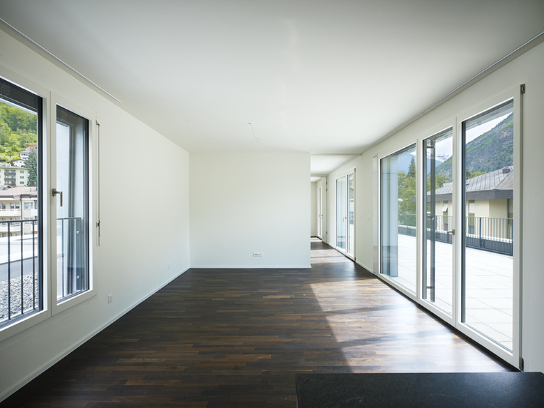Die Parzelle in Visp entstand aus einer Abparzellierung der Tennisplätze und grenzt an eine unverbaubare Parkanlage.