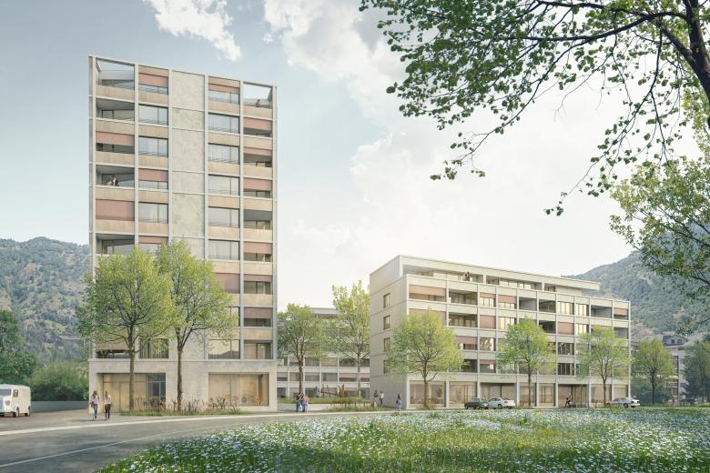 Die vier Wohngebäude enthalten insgesamt 141 Wohnungen und eine gemeinsame unterirdische Einstellhalle. Die Erdgeschosse sind teilweise füreine gewerbliche Nutzung (Dienstleistungsbetriebe) vorgesehen. Sämtliche Wohnungen in den vier Gebäuden werden als Mietwohnungen geplant. Die Gebäude werden in Massivbauweise erstellt. Angestrebt werden kostengünstige Wohnungen mit niedrigen Unterhaltskosten.