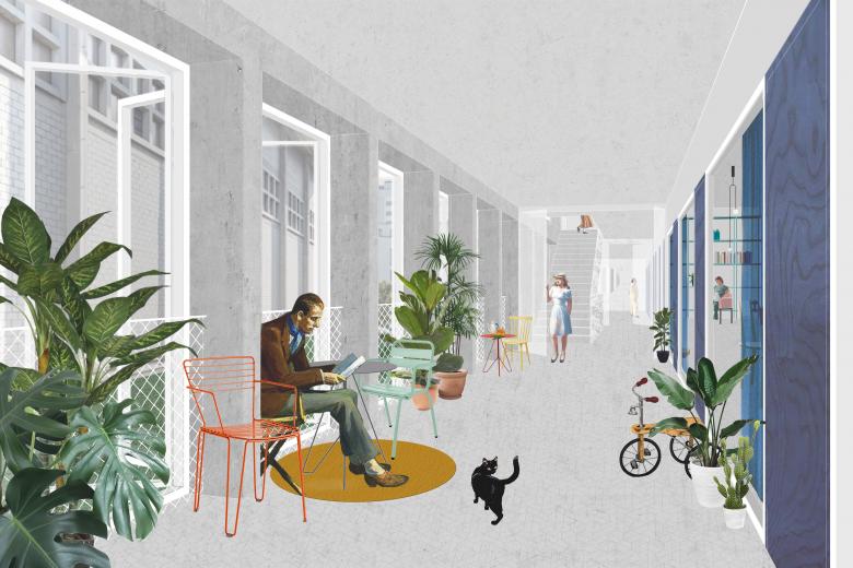 Wettbewerb für einen Umbau einer Büroliegenschaft in einen Wohnungsbau mit flexiblen Kleinwohnungen.