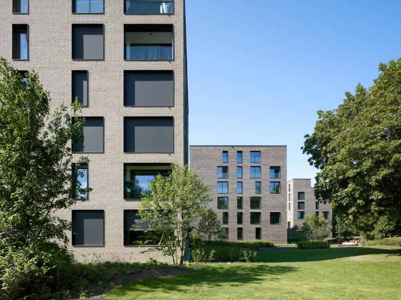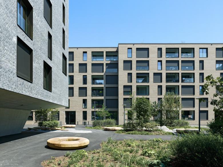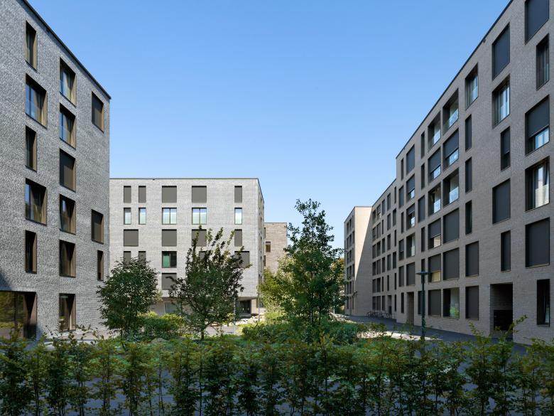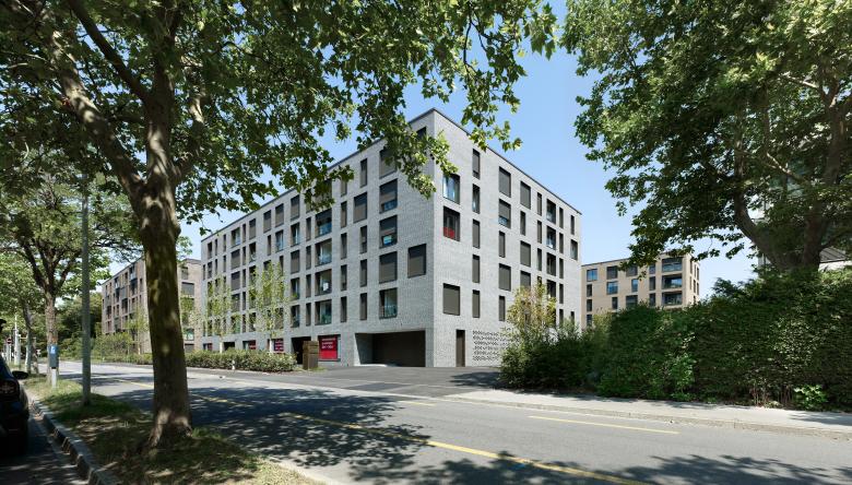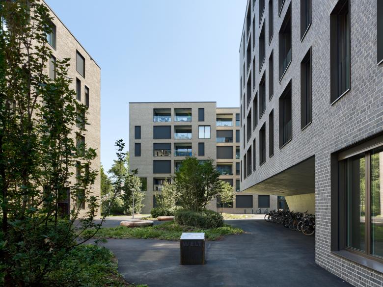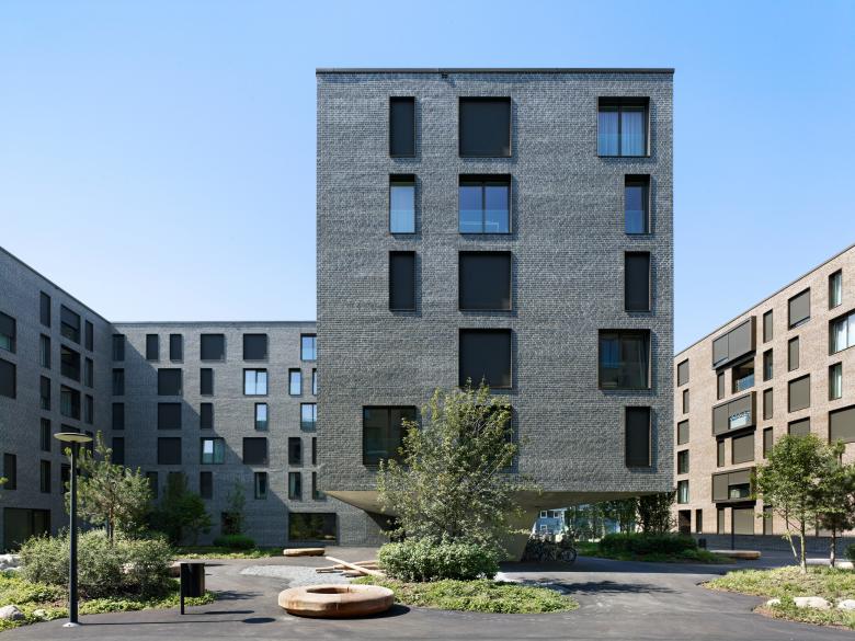 Die markanten, sechsgeschossigen Wohnbauten des Weltpostparks verdichten das Gebiet rund um das Murifeld in Bern und schaffen neuen, hochwertigen und gleichzeitig bezahlbaren Wohnraum. Durch die massiven, farblich voneinander abgesetzten Klinkerfassaden wirkt die Überbauung urban und bildet dennoch einen geschützten, attraktiveren Wohnort mit eigener Identität.