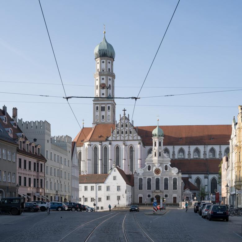 The house of the church is located on a prominently situated site on Ulrichplatz in front of St. Ulrich and St. Afra’s Abbey in Augsburg. The new construction is an ensemble comprised of three buildings—the regional bishop’s office, the church office and the parsonage—which were coordinated with the surrounding historical architecture in regards to volume and scale. The buildings strengthen the square’s spatial boundary and are integrated into the peripheral development of the impressive church complex with their sober facades. Between the church office and the regional bishop’s office, the visitor is led across a small forecourt into the central foyer of the ensemble. The foyer’s dual role as a reception area for the regional bishop, as well as an entrance area for the assembly rooms and administrative office, animates everyday communication between the institutions. The foyer opens to a courtyard at the rear, which is spatially defined by a gallery. Bound by the parsonage, a sheltered exterior space for congregational assembly emerges here. Toward the low–lying Afragässchen alleyway, the new construction steps back slightly in order to allow the residential buildings sufficient daylight, as well as give rise to an elevated terrace in the middle of the Old Town for the community hall and rectories.