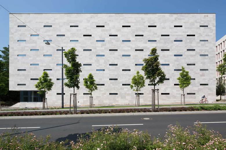 Bei dem städtebaulichen und architektonischen Konzept für das Institut für europäische Rechtsgeschichte ging es darum, eine Balance zu finden zwischen dem verständlichen Anspruch der Max-Planck Gesellschaft nach Eigenständigkeit und der städtebaulichen Intention, auch diesen Baukörper als Teil des Ensembles des neuen Campusgeländes mit dem dominierenden Bau der Zentrale der IG Farben zu begreifen.