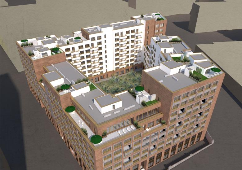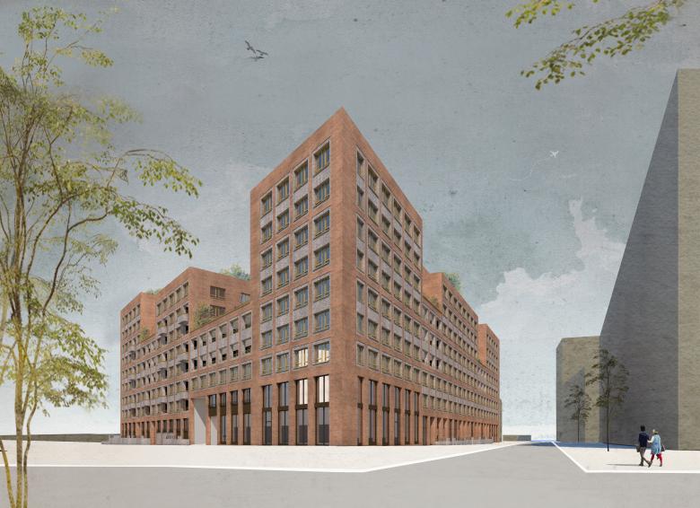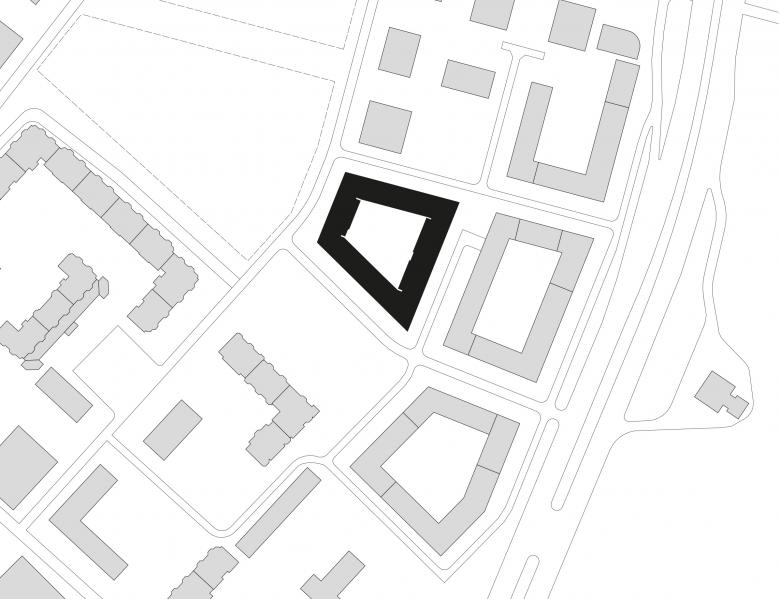 Again, the starting point for the design of this urban project is the model of the “European city” with its clearly defined street and courtyard spaces, the density and compactness of the building volume and the articulated construction of the façade. The 76 x 90 metre development – smaller in dimension than in Yekaterinburg – is interpreted in the form of a small city block, or monoblock. The design idea derives in the first instance from this self-confident large-scale form and emphasises the block-like quality of the building volume, primarily in terms of form, materiality and colour.