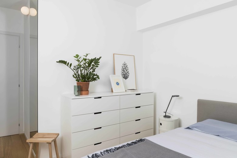 Gli arredi in multistrato di pioppo, materiale semplice e caratteristico, sono presenti anche nella zona notte e negli spazi di servizio.