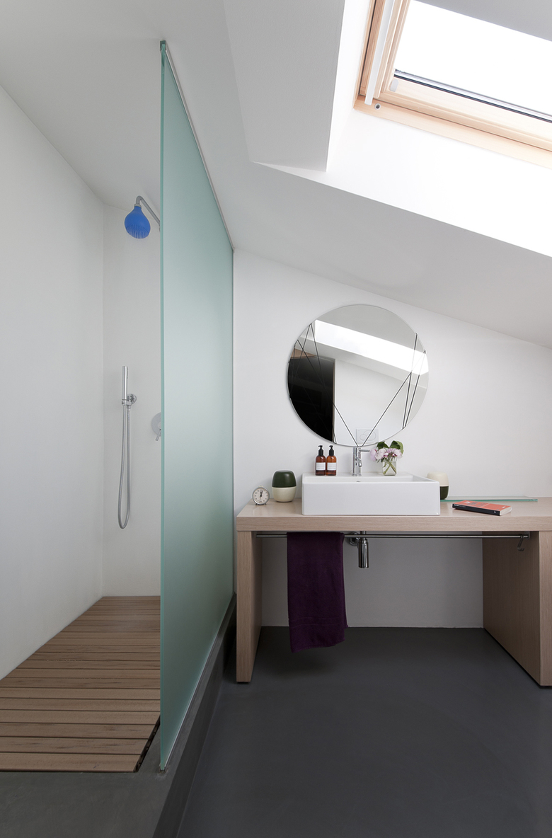 Dalla porta finestra dell’abbaino si accede ad un piccolo terrazzino a tasca con vista sul fiume Adige, dal quale attraverso una scala metallica, si accede ad un’altana posta in corrispondenza della copertura piana dell’abbaino.