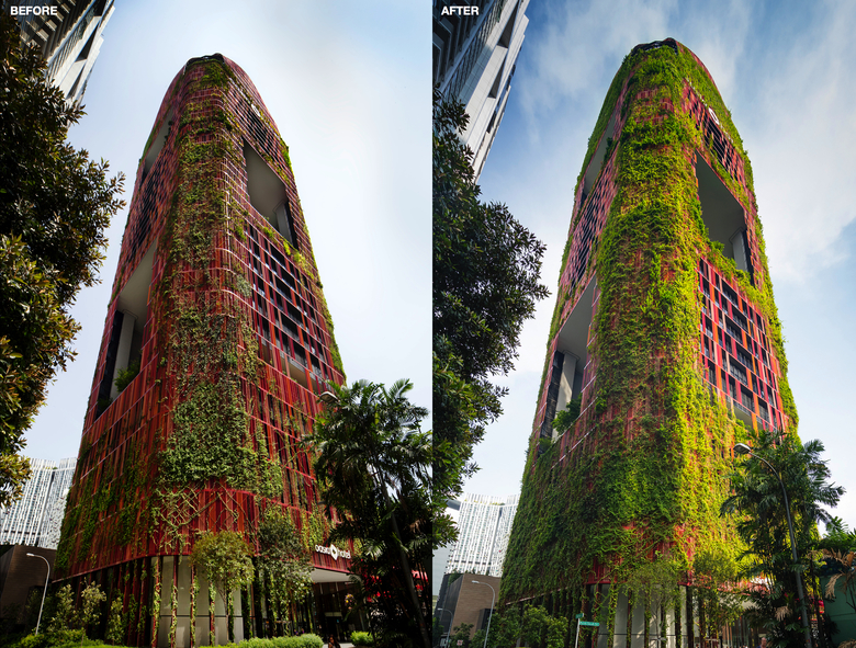 The success of this execution of vertical greenery at such heights, is incumbent on the fact that it introduces in the tropics a manner to combat against rabid intensification and an ever-increasing density of urban development; providing a means for projects to reimagine airspace as landscape space. This serves to augment bio-diversity while providing visual relief in the reduction of reflectance and glare, and thermal relief in the reduction of urban heat island effects.