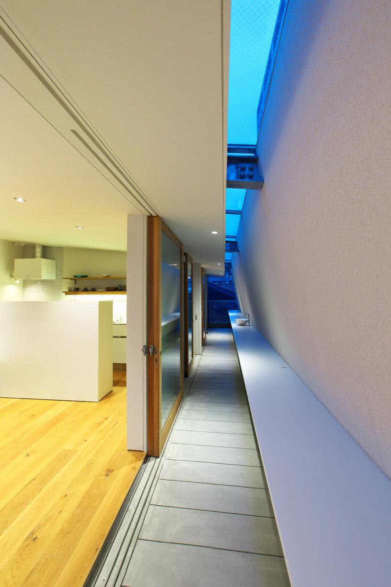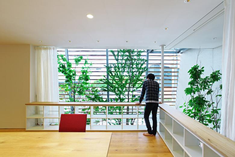 All these areas with their varying functions are linked by a path spanning the three floors. Via this path, one can wander the building as one wanders a shopping district, safely enclosed by the building but still able to enjoy the light filtering through the surrounding foliage within touching distance.