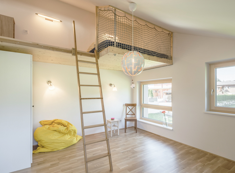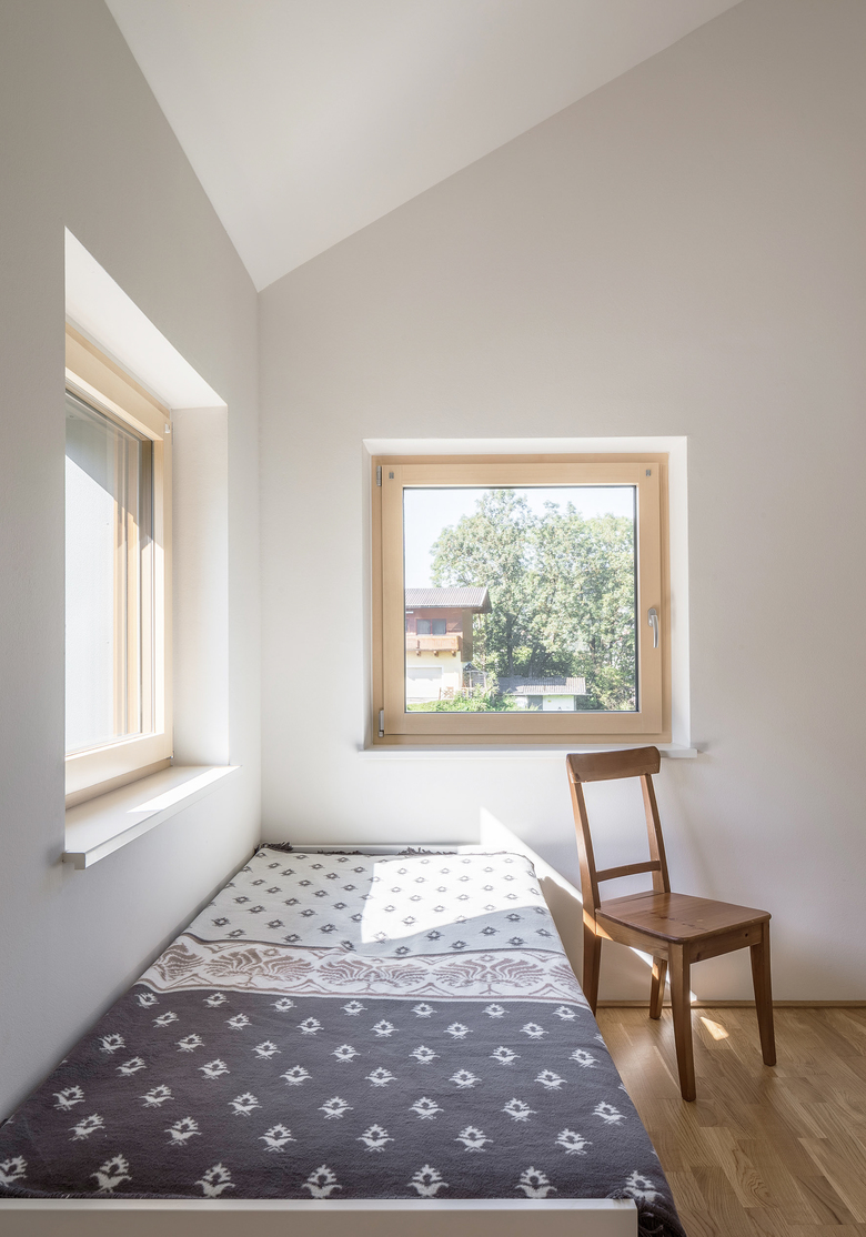 Die Umgebung ist geprägt von einigen locker in der Landschaft verstreuten Einfamilienhäusern, eingerahmt von der angrenzenden Berglandschaft. Umgeben von dieser Landschaft vereint das Haus idyllisches Wohnen mit zeitgemäßer Architektur und schafft so ein ideales "Klein - Familienhaus". Die Fassade, die bewusst gesetzten Fensteröffnungen und die Wahl der Materialien, verleihen diesem schlichten Baukörper einen unverwechselbaren Charakter.