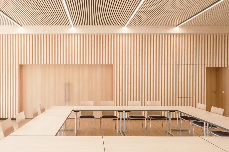 Inspiriert durch die Selbstverständlichkeit und Langlebigkeit der bestehenden Struktur, zeichnet sich das neue „neue PfarrGemeindeZentrum“ durch seine zurückhaltende Architektur und durch einen funktionalen Minimalismus aus, der sich zurücknimmt und der Ausgewogenheit von Materialien, klaren Formen und Funktionalität, Raum bietet.