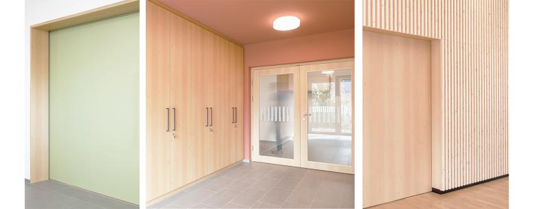 Das Gestaltungskonzept der äußeren Erscheinung setzt sich im Inneren der bestehenden Räumlichkeiten fort, - auch hier herrscht eine reduzierte Gelassenheit. Durch das zurückhaltende und funktionale Zusammenspiel der inneren Raumfunktionen, in Verbindung von natürlichen Materialien und Farben, wird die selbstverständliche und präzise Architektur gestärkt und ein zeitgemäßes Gesamtbild geschaffen.