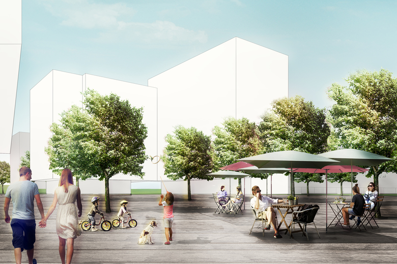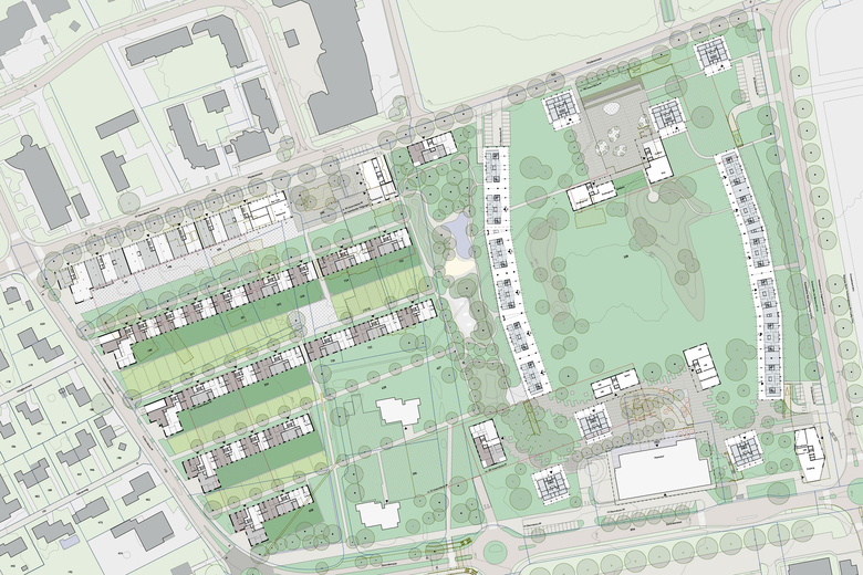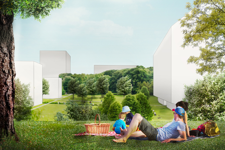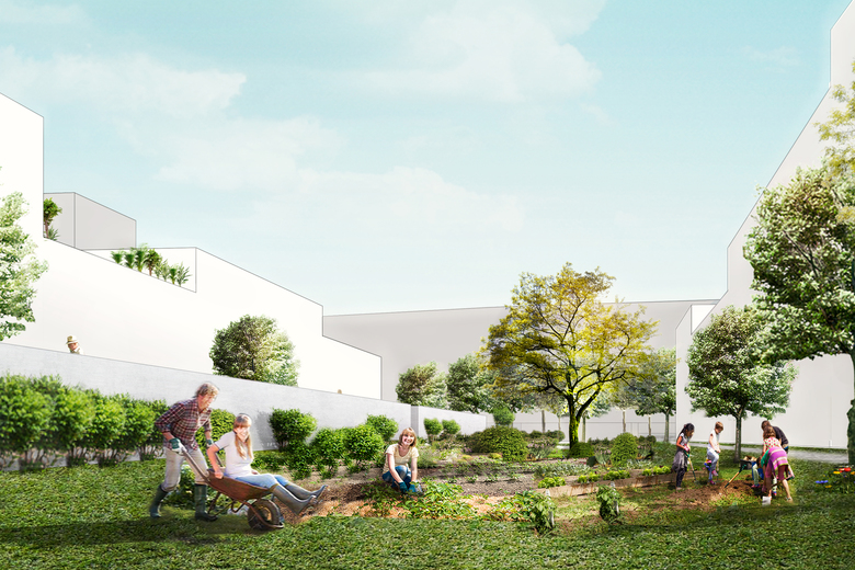 Das Areal ist auch geprägt von seiner starken Durchgrünung und seinem mittelländischen, ländlichen Charakter. Die Wegevernetzung des Langsamverkehrs ist essentiell für die Integration des Perimeters. Dazu bietet die Planung durch unterschiedliche Verteilung von Platzanlagen und Ausprägung des Grünraums im Quartier abwechslungsreiche Aussenraumqualitäten mit verschiedenen Charakteren an. Zudem ist der Aussenraum in der Mitte des Areals durch eine parkartige Landschaft mit raumwirksamen Bäumen und Sträuchern definiert. Dieser Park ist als kollektiver und attraktiver Grünraum mit Spielplätzen und abwechselnd verdichteter Vegetation im Zentrum des Masterplangebietes als Begegnungszone für die BewohnerInnen zu interpretieren.