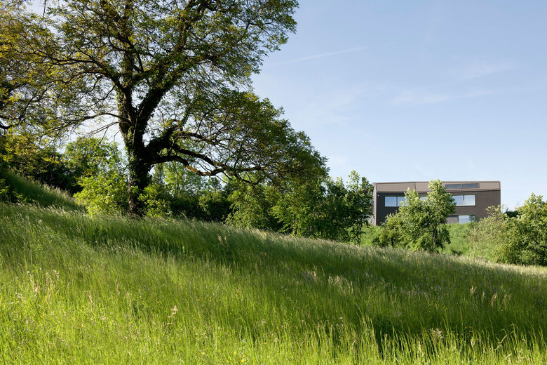In Villigen ist ein aussergewöhnliches MINERGIE-P – Einfamilienhaus entstanden. Dieses in Holzelement-Bauweise erstellte Haus sticht insbesondere durch seine spezielle Volumetrie sowie durch die konsequente Materialisierung (Aussenwände mit Eternitschindel-Verkleidung, innen sichtbar bleibende Blockholz-Platten an Wänden und Decken) ins Auge.
