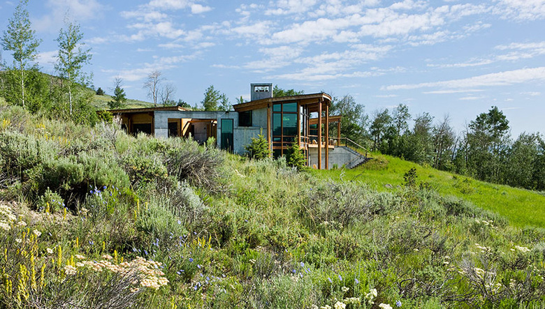 Transparency is realized on multiple levels at the Landes-Oatey residence, including the overt physical transparency of large glass openings, fiberglass grated decks that allow light filtration to a daylight basement, interior slatted fence-like wood surfaces, and numerous clerestory windows. The combination of translucent elements creates a building that appears as minimal intervention on the site, casting attention toward its dramatic natural surroundings. Consciously eco-sensitive elements—passive solar, thermal massing and recycled materials—enhance the theme.