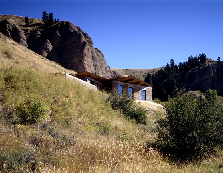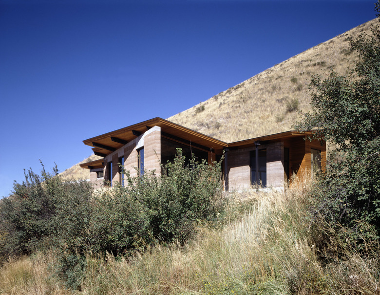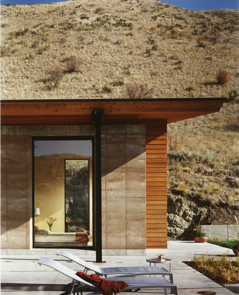 Naturally simple, the TK Pad is settled organically into a reddish-brown butte 10 miles south of Jackson. From its unadorned and earthy materials—most notably the post-tensioned rammed earth walls, patented by the architect and used here for the first time—to its butte-side orientation, the residence is in harmony with its environment for a successful design that won the architects an Award of Excellence in the “Built” category from the Wyoming chapter of the American Institute of Architects.