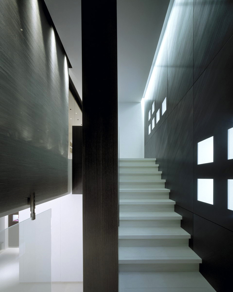 The showroom and the main stairway of the space are arranged parallel to the façade of the first floor, which is composed of highly transparent glass. For the gallery on the second floor, translucent glass printed with a dot pattern is hung parallel to the façade to control the view from inside. Photographs on display can be installed on this translucent surface, and the result is an exhibition that floats against a background where you could see and feel the city of Tokyo itself, showcasing the city beyond in a manner that recalls the 35mm “documentary” photographic style for which Leica is famous. You may say that photographic “reality” is layered on the “real city” of Tokyo.