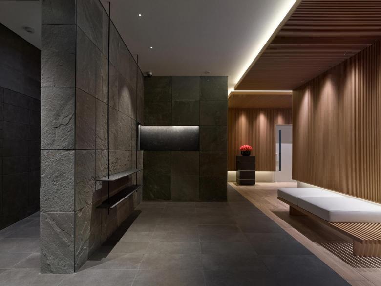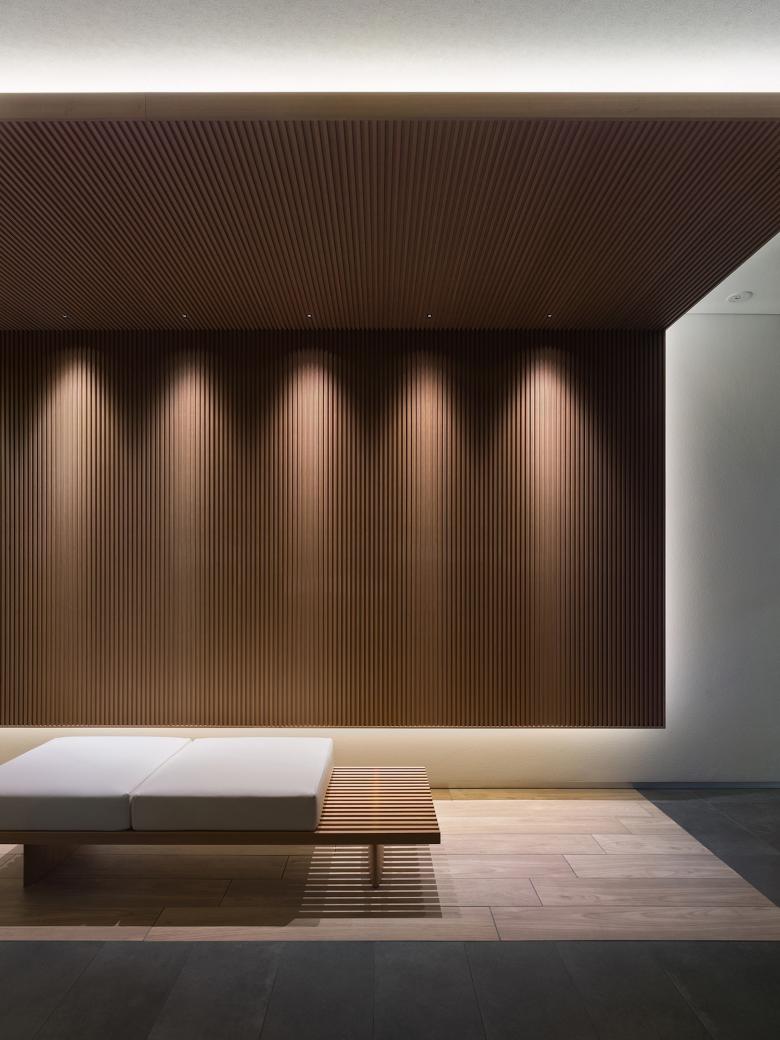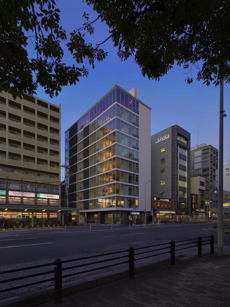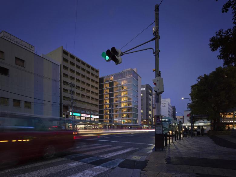 This is a plan to build an upscale condominium at the corner of where the main street of Shijo-Dori meets the plaza in front of Shijo-Omiya station of Hankyu line, right in the middle of downtown Kyoto. It is a residential building facing a very busy environment of the 24-hour high traffic street of Shijo-Dori. It started with a question of if a balcony area is necessary, usually seen in apartment buildings.A balcony serves as an “interface” between the residence’s indoor space and the city outside and is an important space for residents to feel the air outside. But is it really necessary for this busy environment of Shijo-Omiya? Rather, instead of a balcony, would a floor-to-ceiling opening be better to enjoy the unobstructed view outside from a low seat, without balcony railings? The necessary installments of ventilators and air conditioners can be arranged accordingly. Thus this style of current openings were decided based on the idea that a more comfortable living environment can be achieved, instead of designing a balcony space. As a result, we managed to come up with a quiet and calming presence of residential building, which does not project a loud statement in the busy city surroundings.