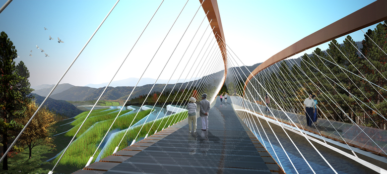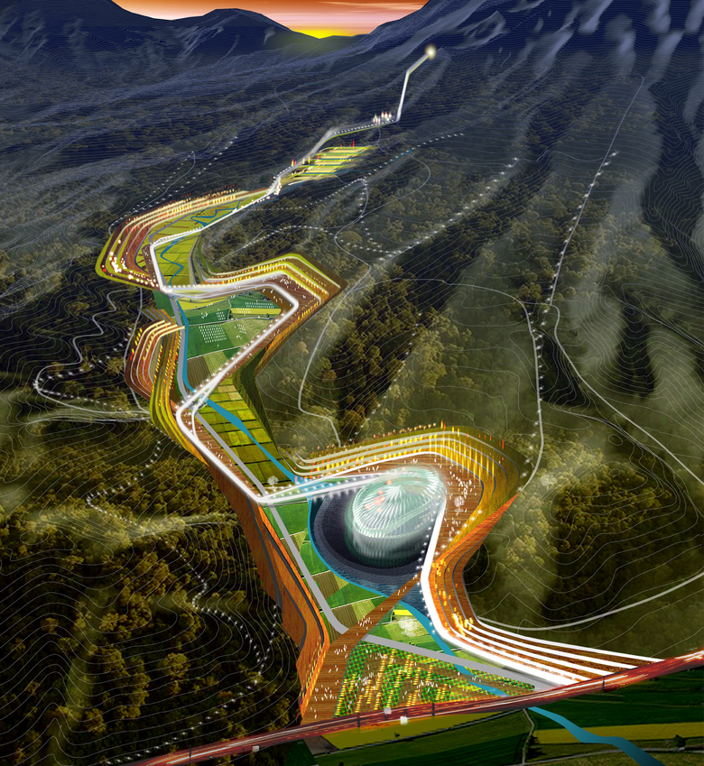Weiss/Manfredi's design for the Taekwondo Park celebrates the history and culture of Korea, the principles of Taekwondo, and the site's dramatic topography. The project is organized around three distinct precincts that represent body, mind, and spirit. Bridges and pathways link a sequence of programs ranging from the spectacle of the arena to the serenity of the healing center retreat. Diverse activities and landscapes are brought together into one continuous park that embodies Taekwondo and makes legible the ascending topography.