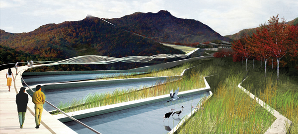 The Taekwondo Park establishes a dynamic gateway to the physical and philosophical world of Taekwondo, becoming an athletic and cultural destination for 70 million practitioners from around the world. Weiss/Manfredi was one of seven international firms invited by the Taekwondo Promotion Foundation to participate in the competition. The short list of firms included Andres Perea Ortega, Sung-Yong Joh, Junsung Kim, Young Joon Kim, Chul Kong, and Diller Scofidio + Renfro.