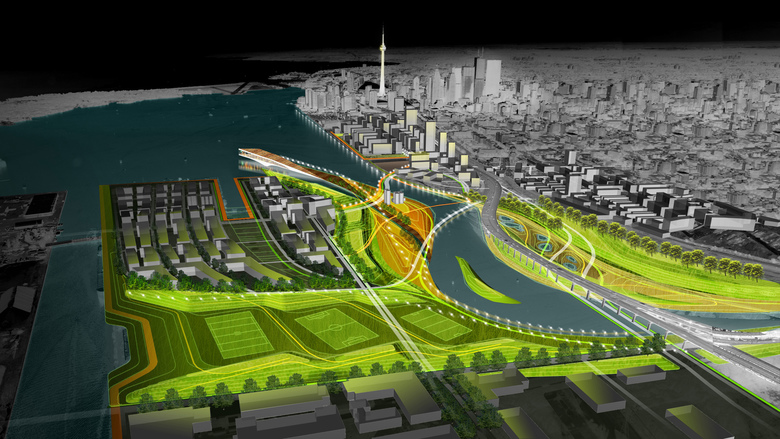 The design strategy for the park and infrastructure will become a catalyst for urban development and an international model for innovative waterfront development.