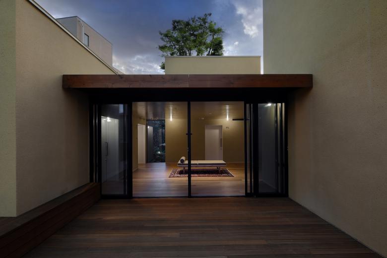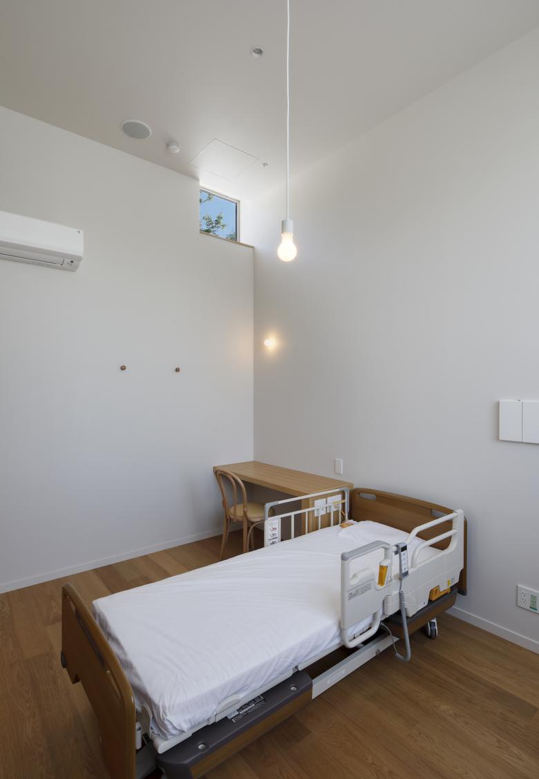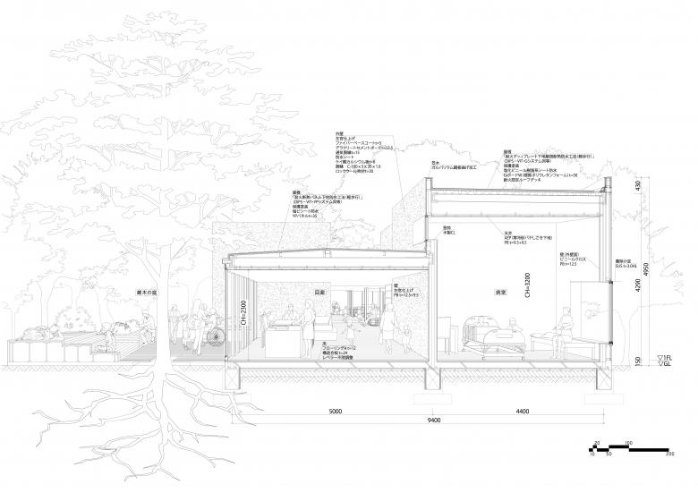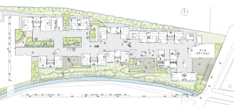 This hospice facility plays an intermediate role between a home and a hospital, providing palliative care for terminally-ill cancer patients. In addition to a treatment facility, we imagined a hospice like a home. In other words, we sought to create a more quotidian atmosphere, rather than the “isolation” typical of hospitals. Arranged to avoid the existing trees in the site, the building consists of a compact hospital room and nurses’ station connected by a corridor that imparts sequential continuity to the space and serves as a place for patients to spend time with family and friends.