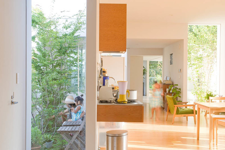 Each block has a function such as kitchen, washroom, dining room, working space, and so on and the space connecting the blocks would remain open to provide a view of the exterior. That means that there are no defining functional boundaries between the kitchen, the living area, and the working area; the space remains ambiguous.