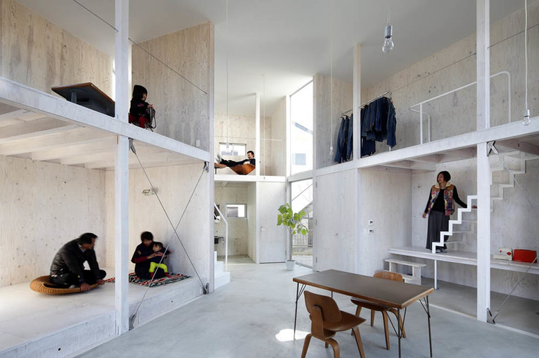 The construction of the building is made by forming 4 boxes, each box divided into 2 layers around a central space which acts as the hub of the home in which the family gathers.