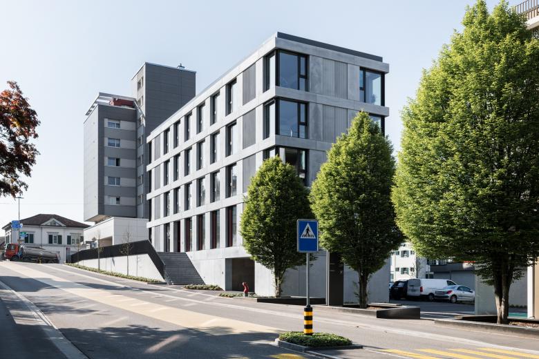Ein geschickt gesetztes Volumen klärt und komplettiert die räumliche Situation auf dem Ochsen-Areal. Innen wie aussen sorgt pragmatische Schnörkellosigkeit für ein überzeugendes Resultat.