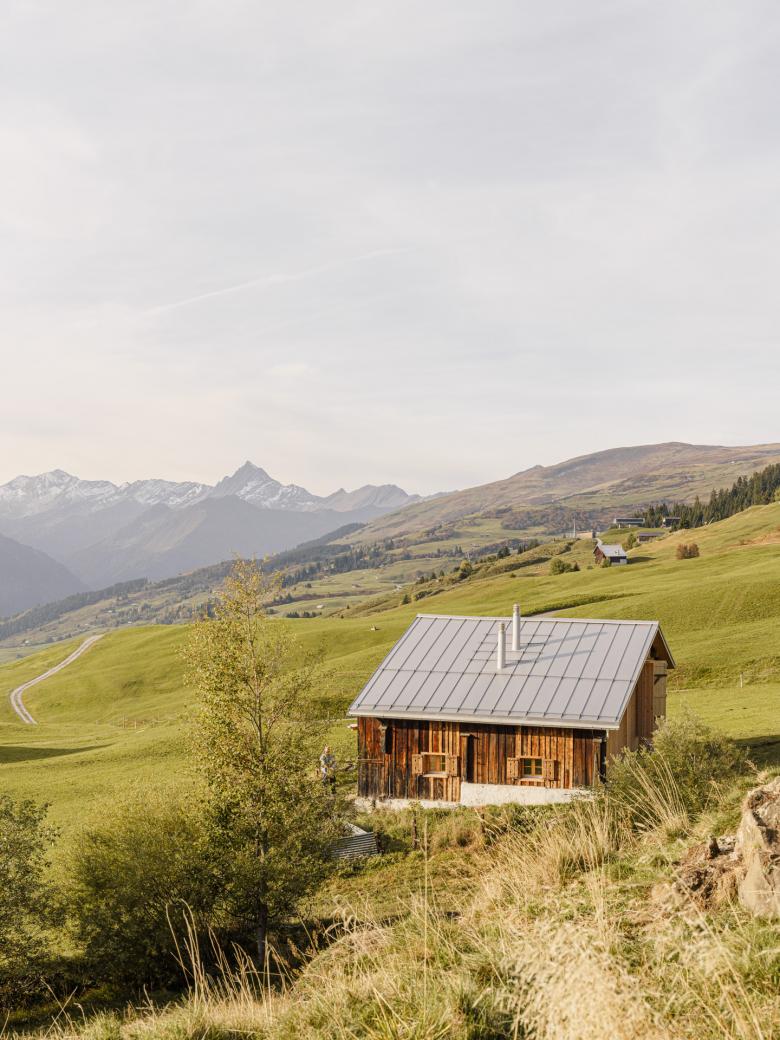 Vom Maiensäss zum smarten Tiny House. Ein selektiver Rückbau befreite das Hausinnere von diversen Umbauten. Einzig die ursprüngliche Holztragkonstruktion blieb erhalten. Mit einer neuen, korridorfreien Raumdisposition entstand auf rund 40 Quadratmetern eine Vier-Zimmerwohnung für vier Personen.