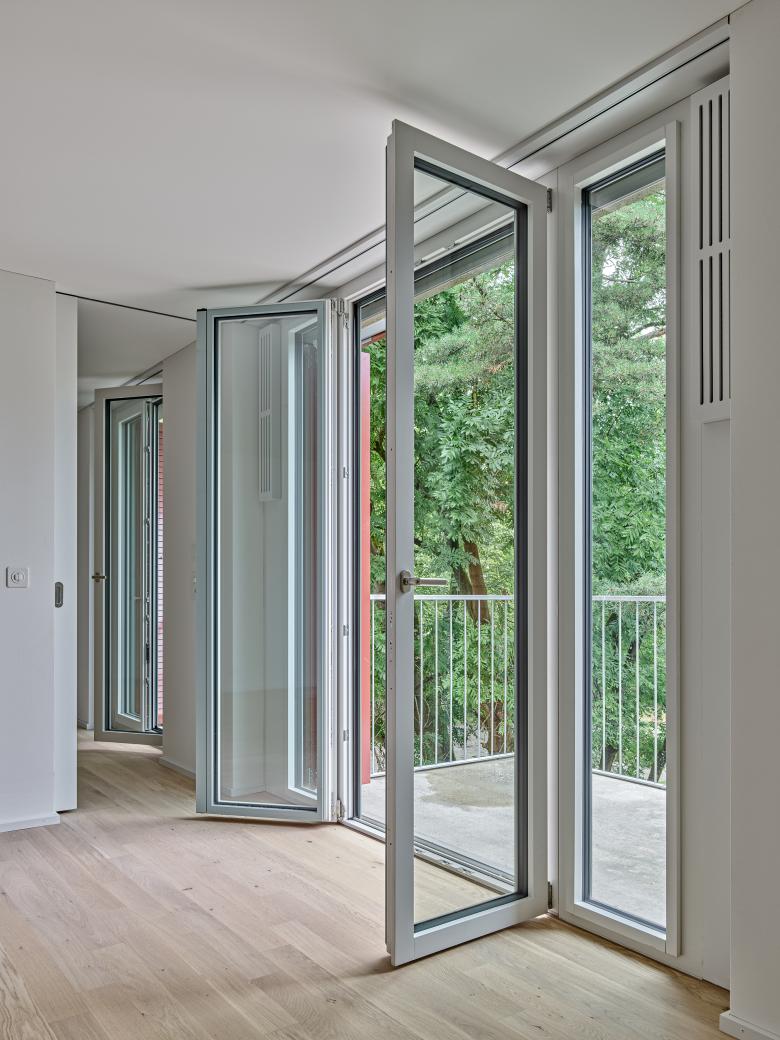 Auch die strassenseitige Fassadengestaltung bezieht sich in Rhythmus, Proportionen und baulichen Elementen stark auf den vorgefundenen quartiertypischen Ausdruck. Zum Hof wird eine offene Treppenanlage vorgeschlagen, welche als Ort der Begegnung dienen soll. Ein grosszügiger gedeckter Durchgang zum Innenhof erschliesst einen Gemeinschaftsraum für die ganze Siedlung. Vom Leonhard Ragaz Weg her erschlossen wird ein Kindergarten der Stadt Zürich, auch dieser erhält einen direkten Ausgang auf den Hof.